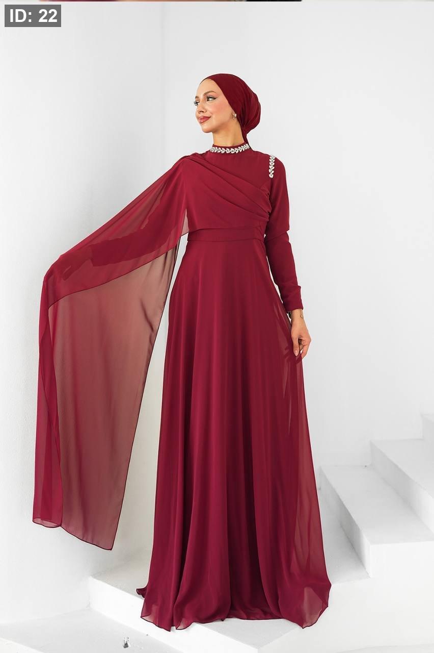 فستان كتف كرستال وشيفون